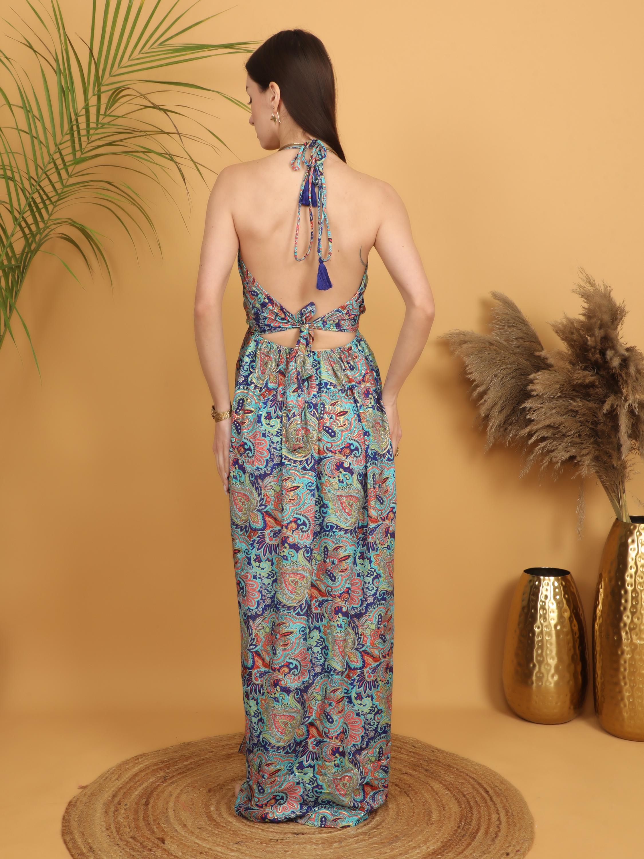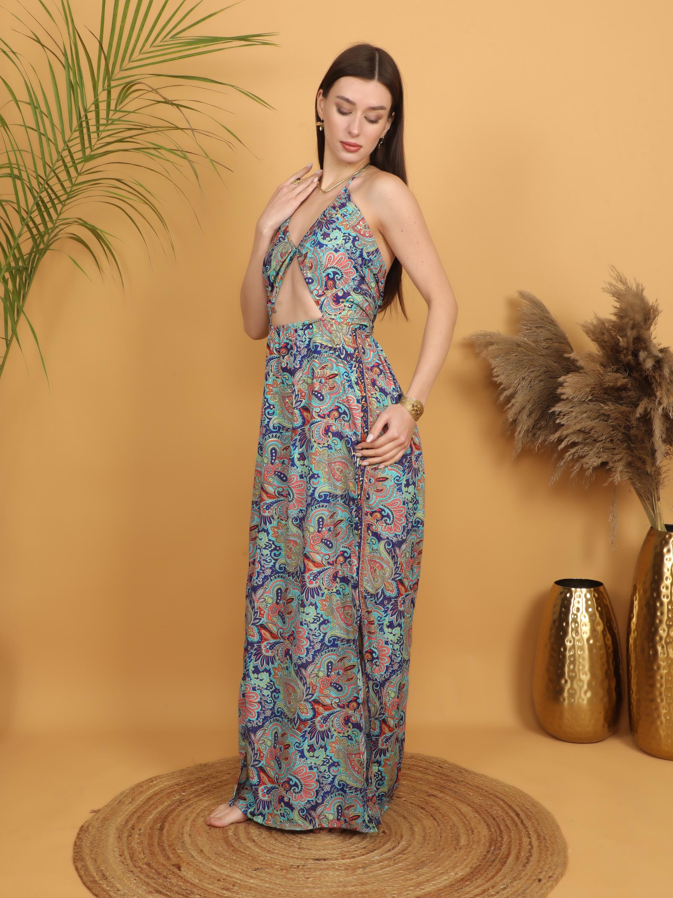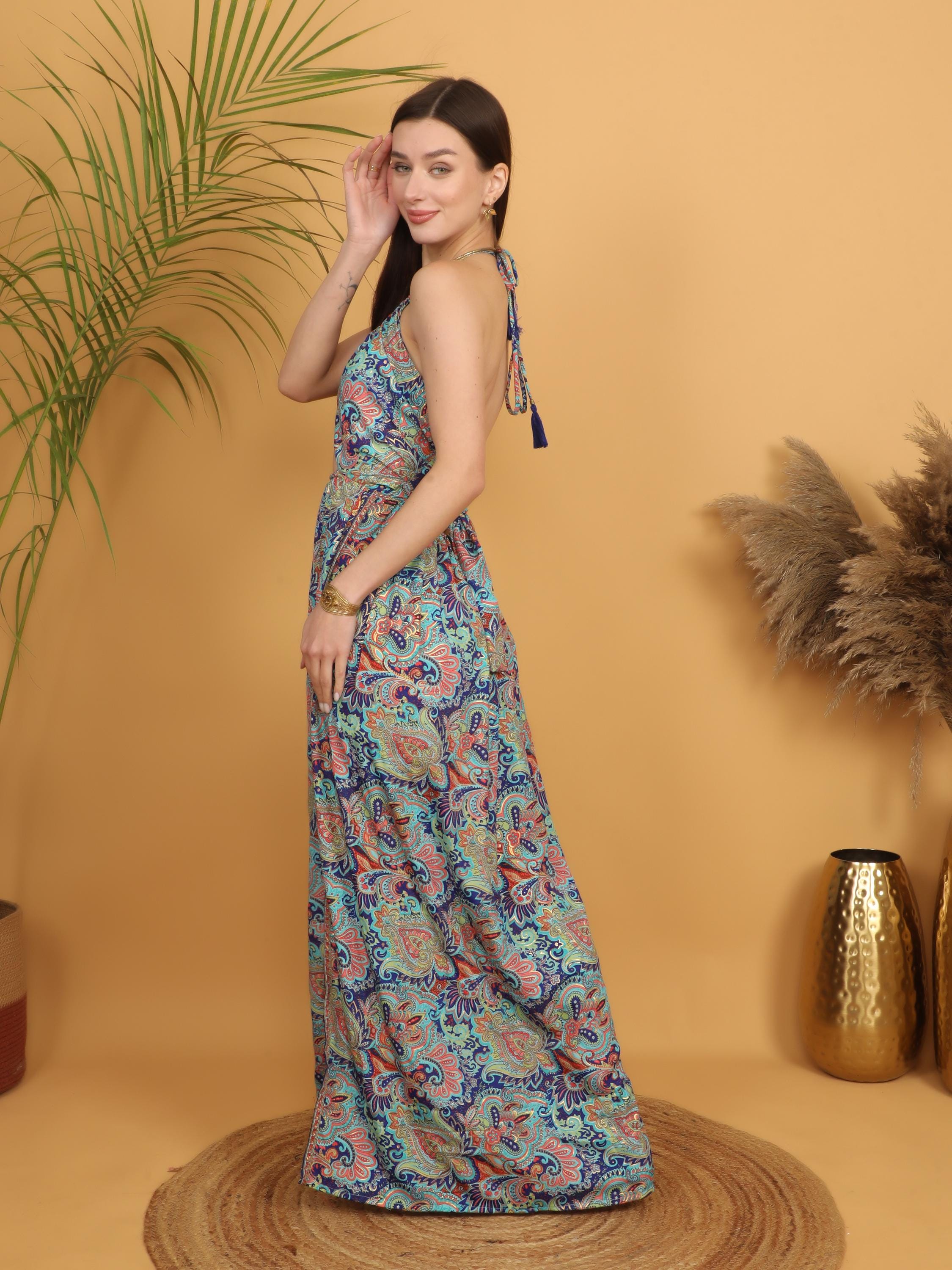 Make a bold bohemian statement with this stunning teal blue paisley maxi dress, designed for women who love vibrant colors and effortless silhouettes.