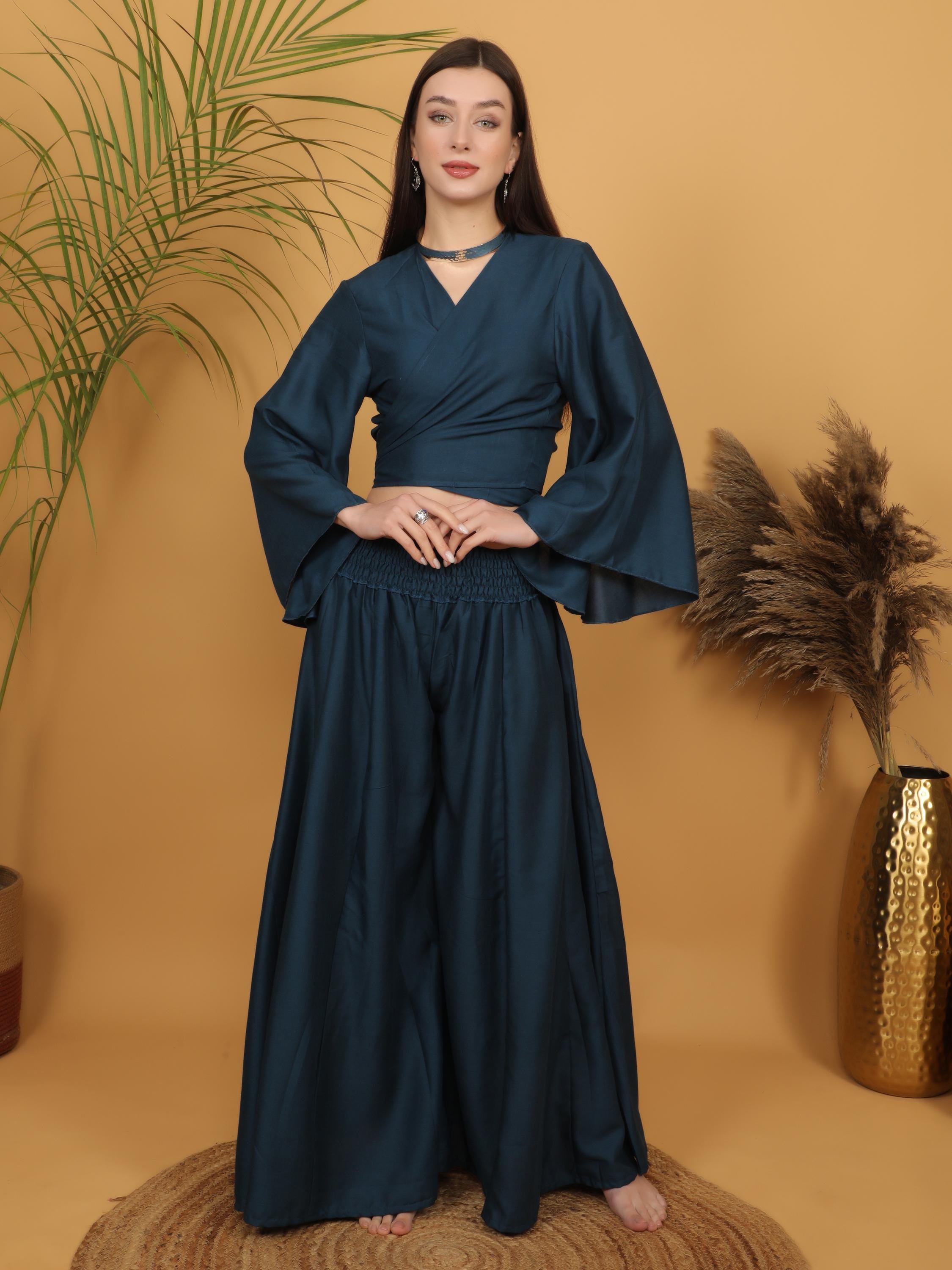 The rich teal shade sits between blue and green tones, giving this piece depth and refinement while remaining easy to style. It’s a timeless statement blouse that works beautifully for creative styling, evening outfits, or layered boho looks.