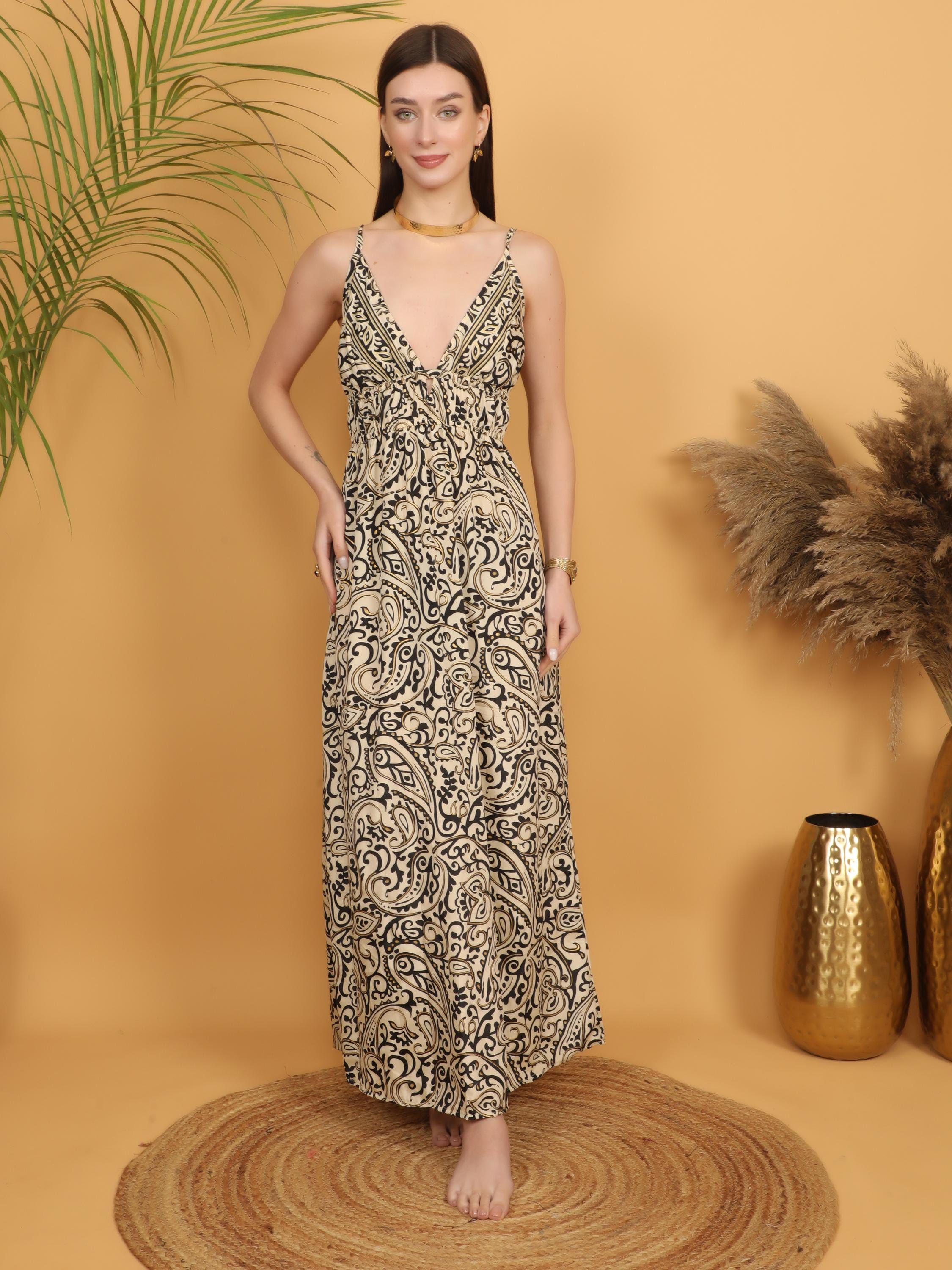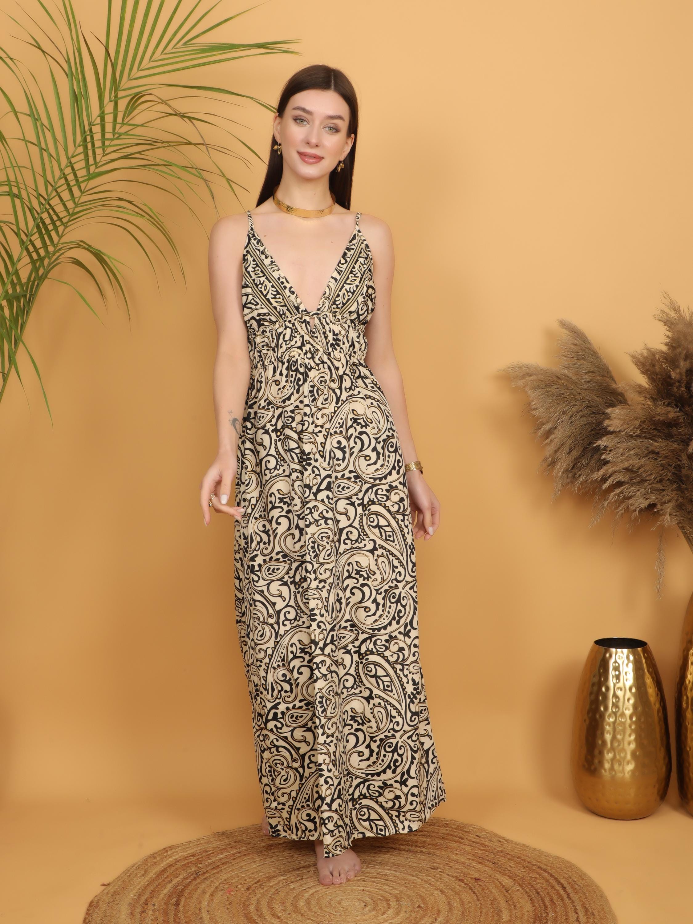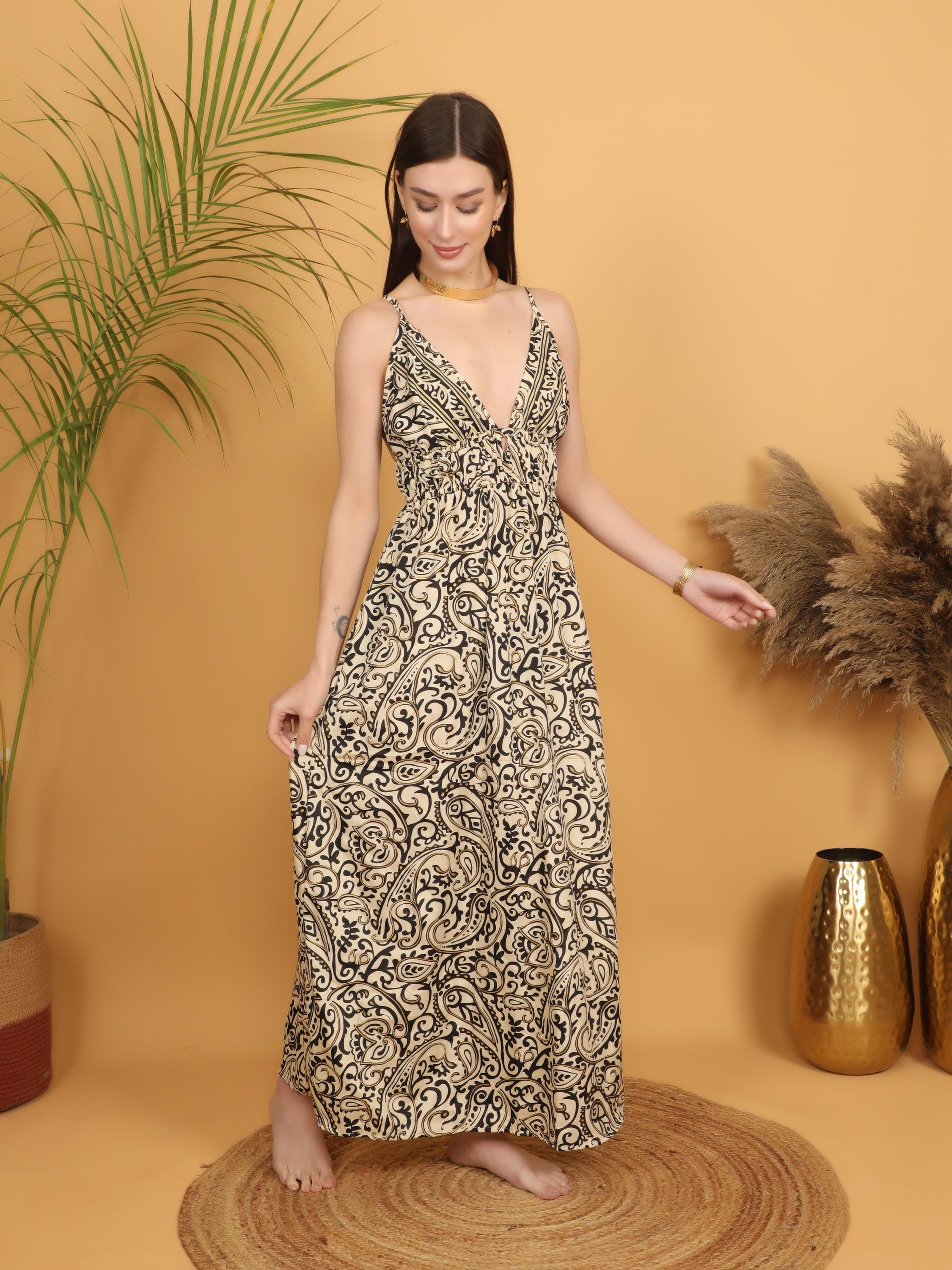Channel timeless bohemian elegance with this flowing paisley maxi dress, designed for the modern free spirit. Crafted from lightweight polyester, the fabric drapes effortlessly over the body, creating soft movement with every step while remaining comfortable and easy to wear throughout the day. Its airy feel makes it perfect for warm weather, vacation escapes, and relaxed summer gatherings.