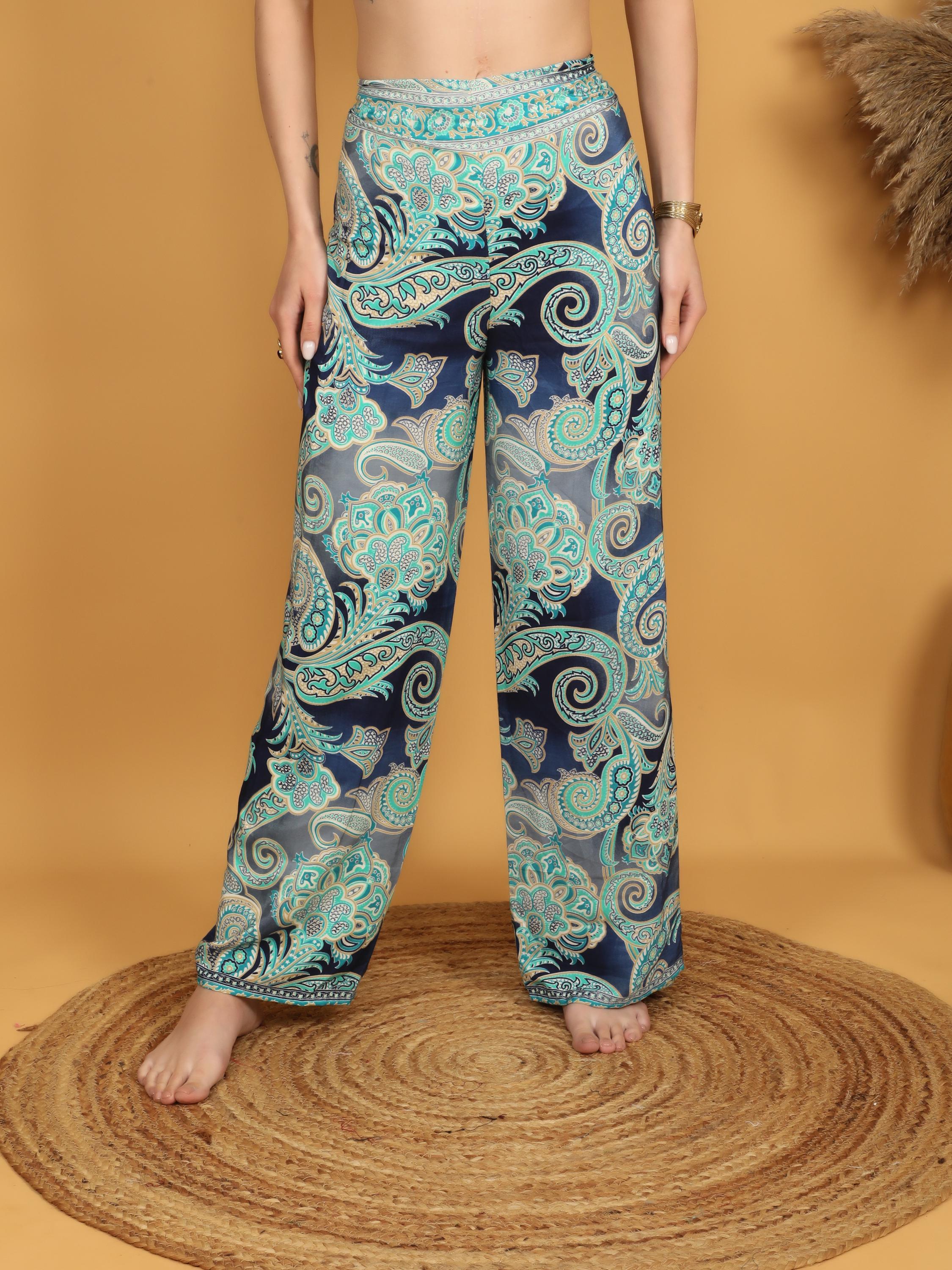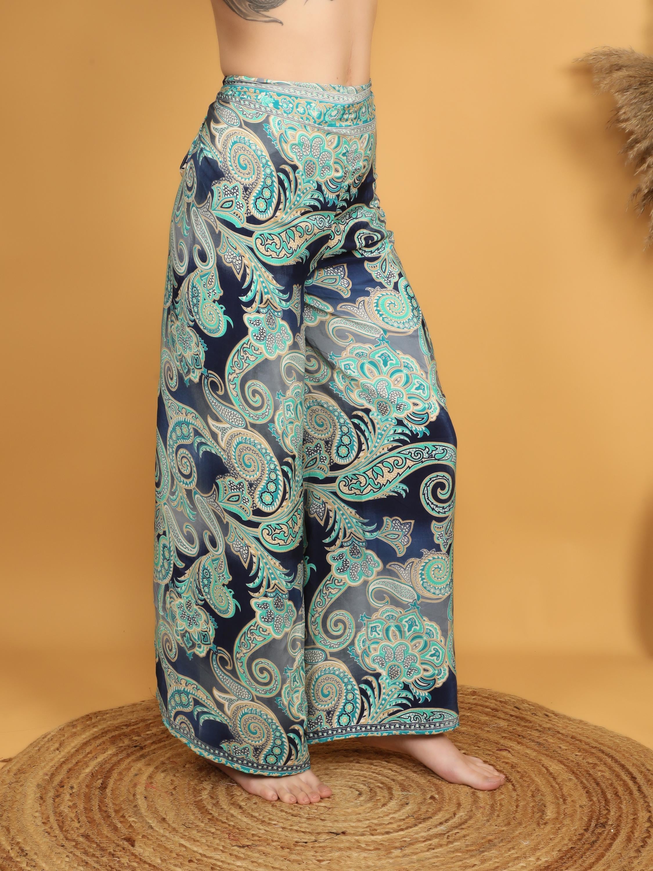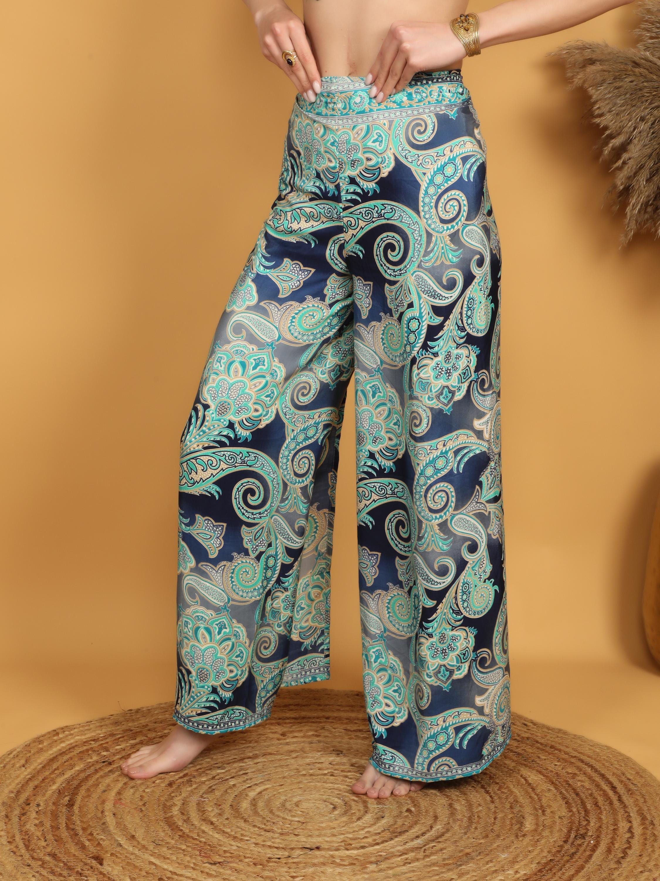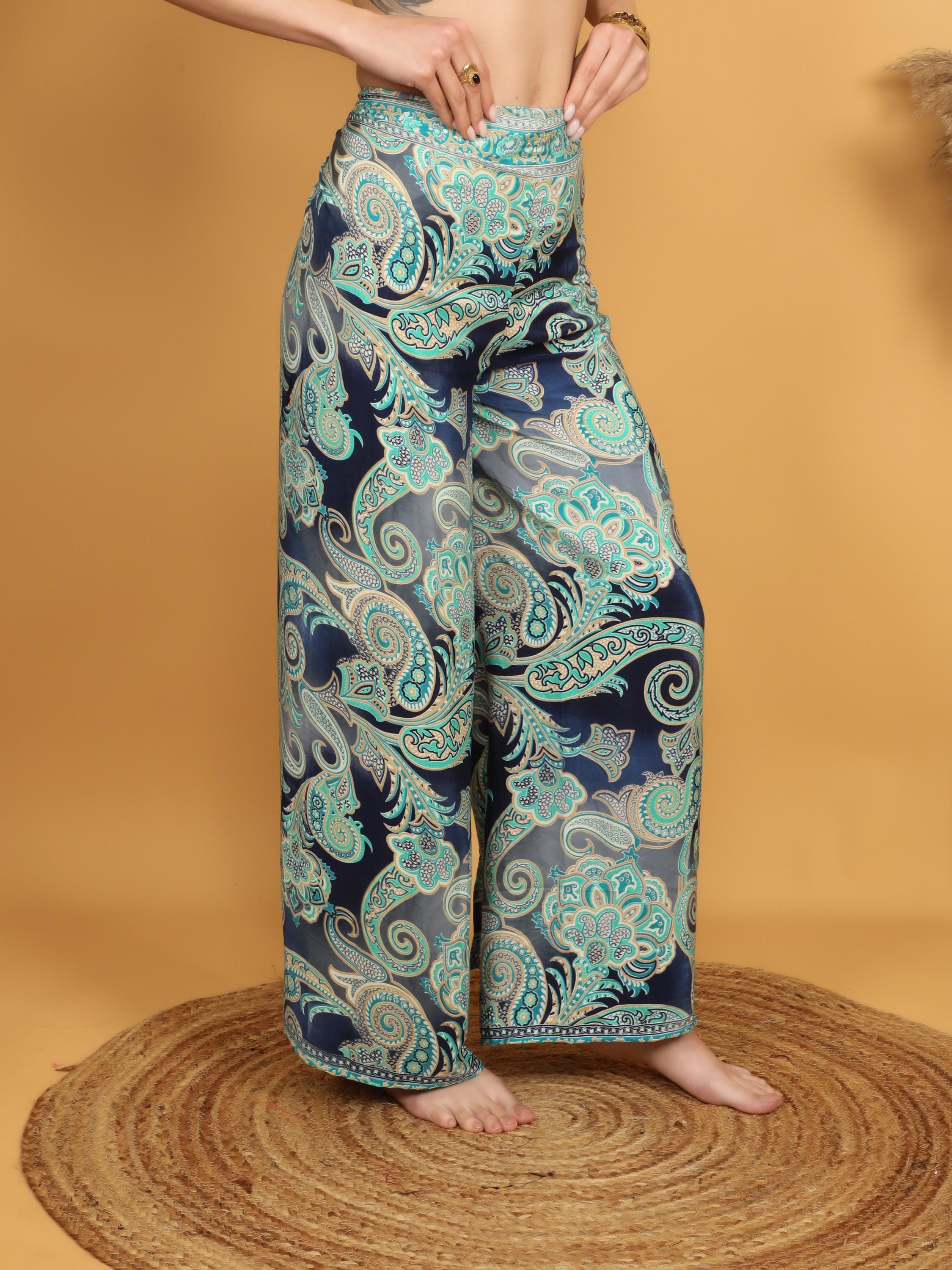 Versatile and eye-catching, these paisley pareo pants pair effortlessly with fitted tops, cropped blouses, or simple tanks for a balanced boho look. Whether styled casually or dressed up with accessories, they deliver movement, comfort, and timeless bohemian charm in one standout piece.