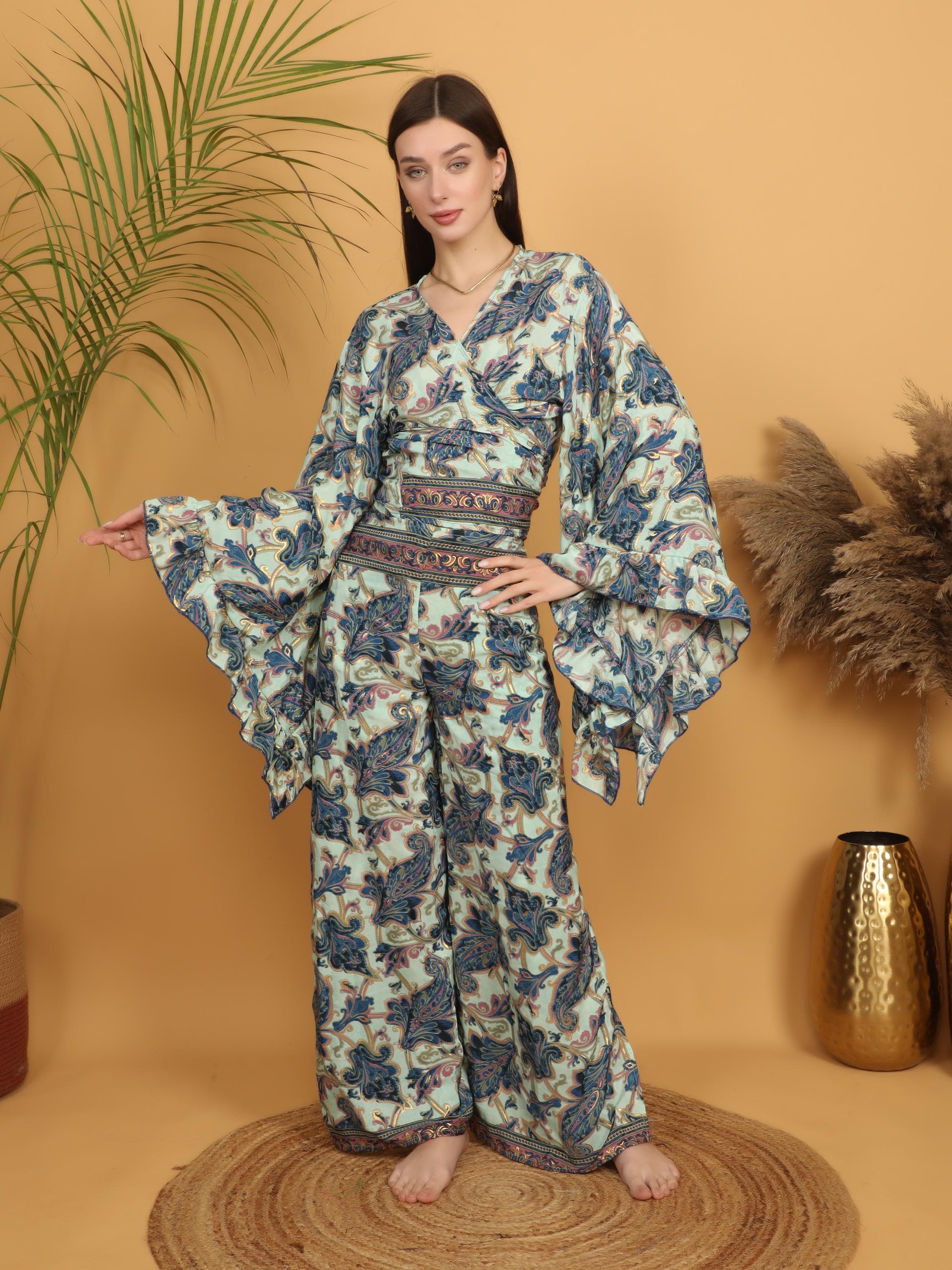 These boho wrap pants are perfect for creating statement outfits with minimal effort. Style them with a simple crop top, a loose blouse, layered jewelry, or sandals for a look that feels confident, artistic, and authentically bohemian.