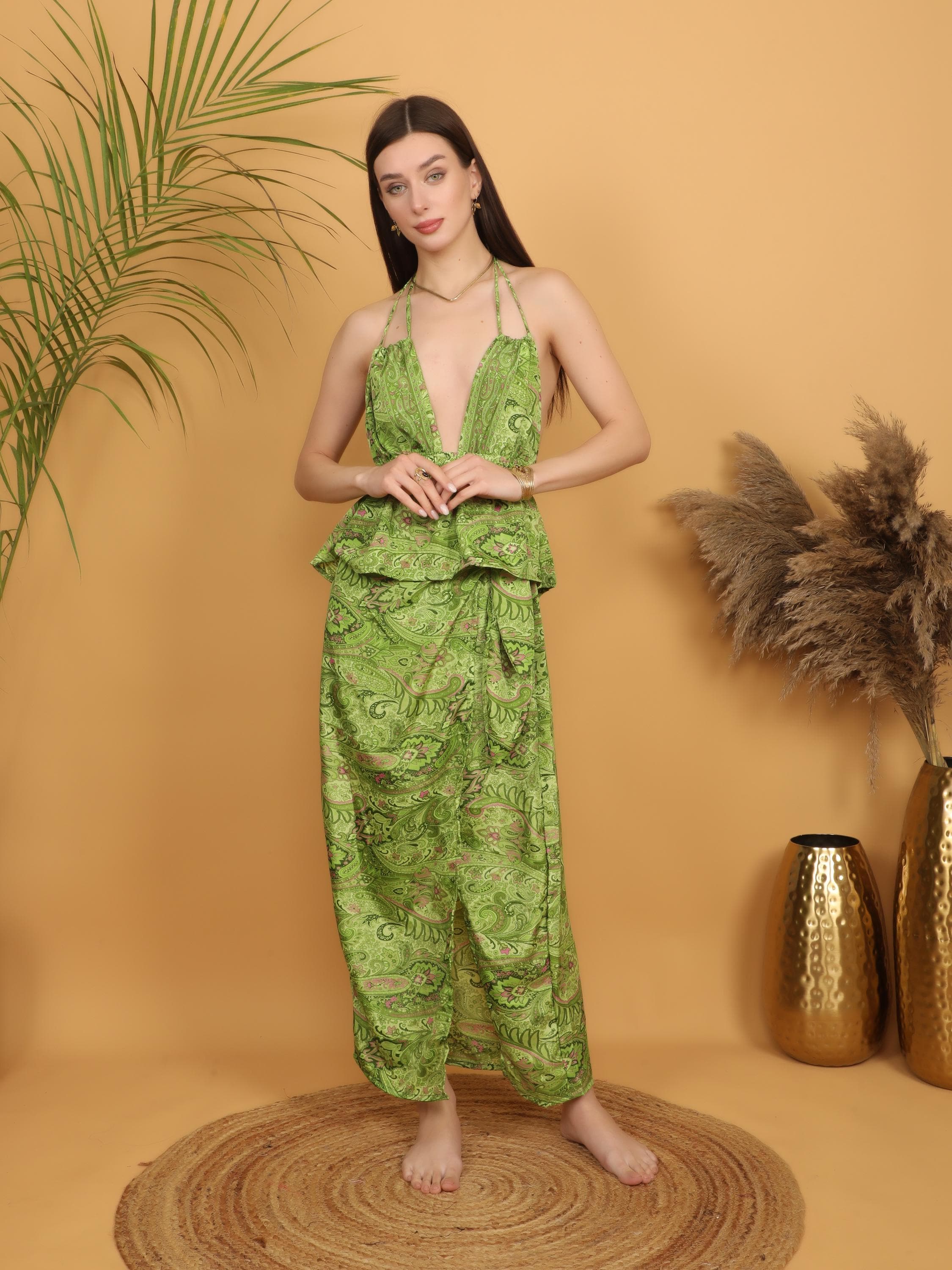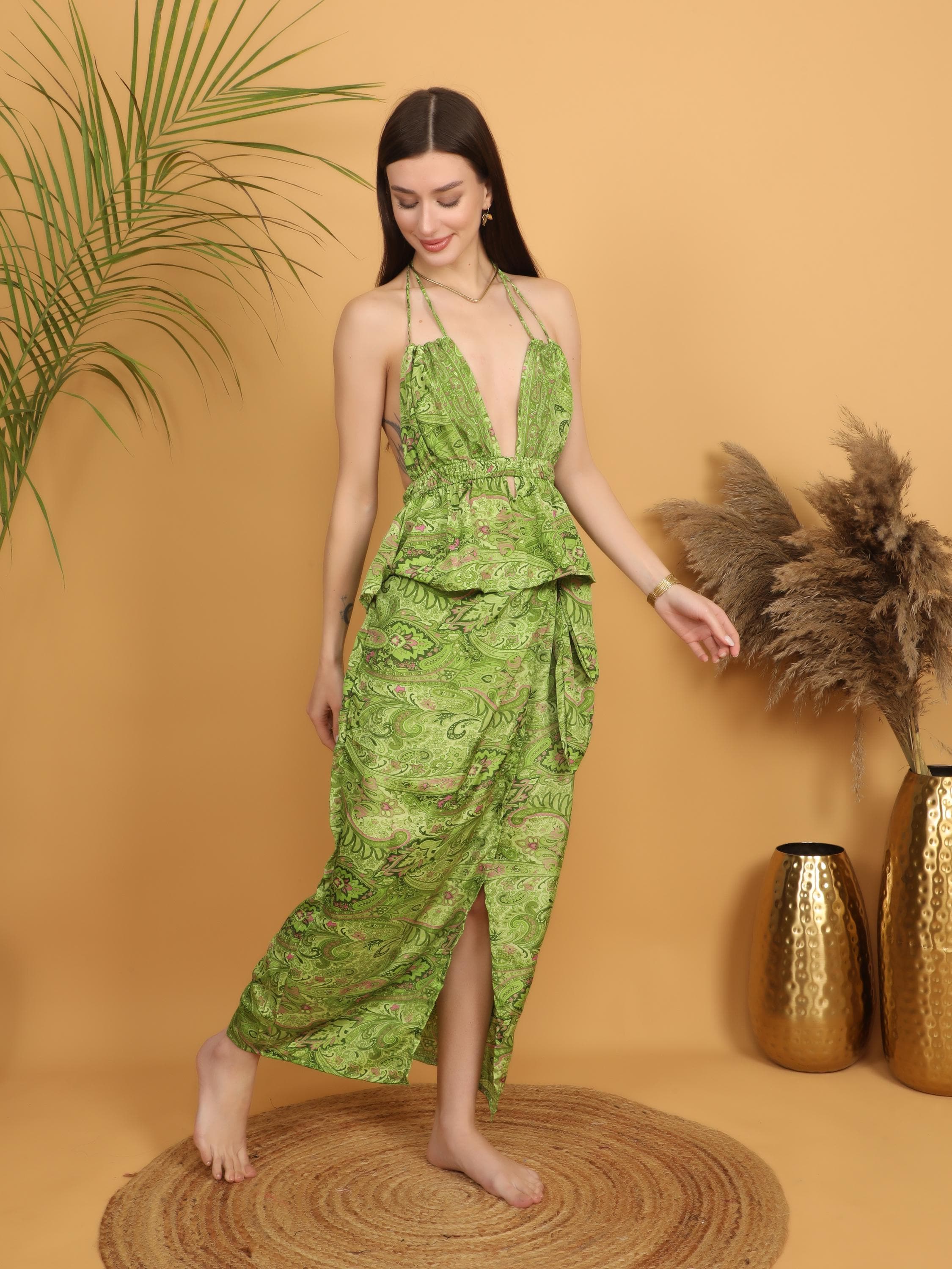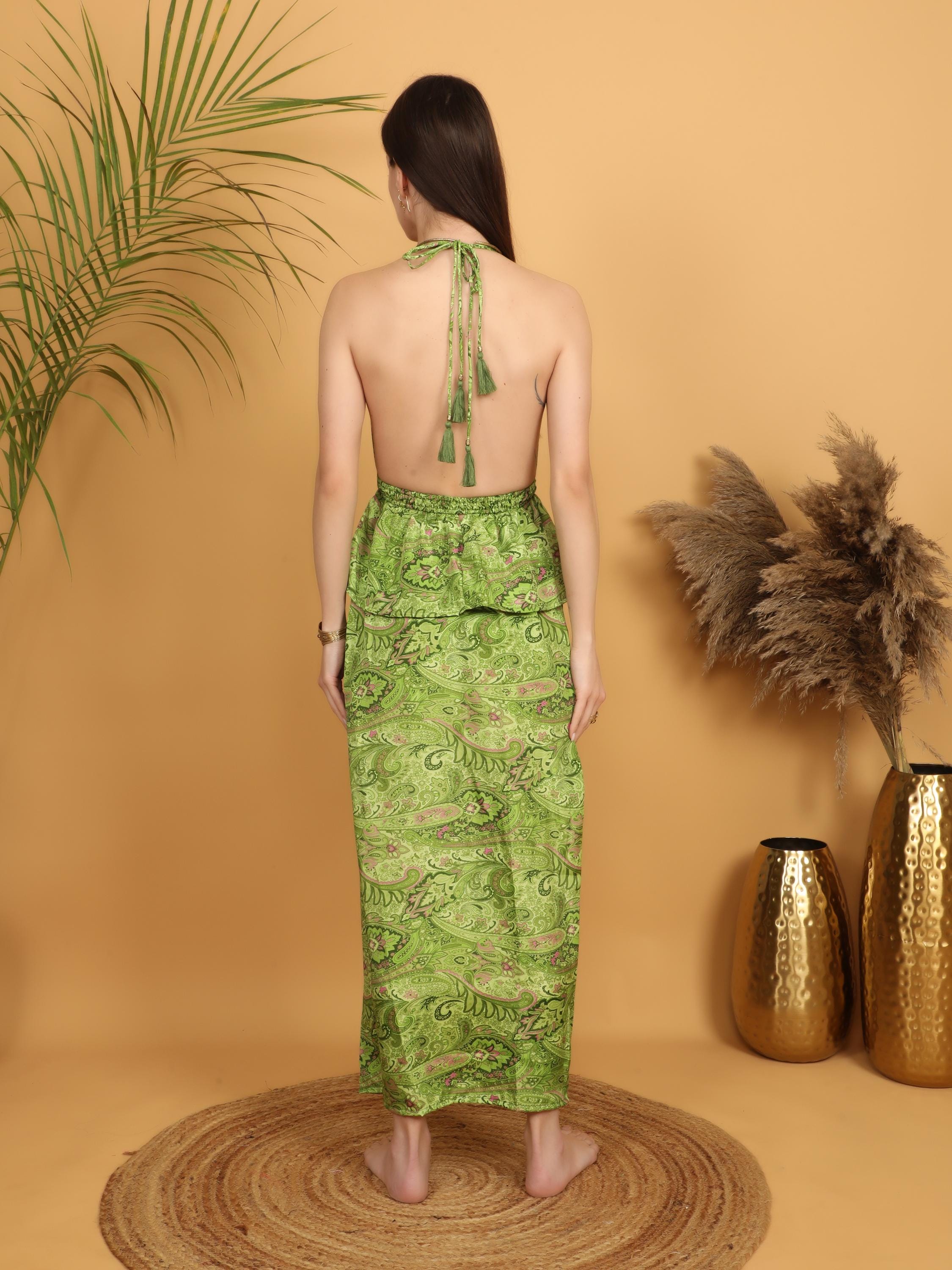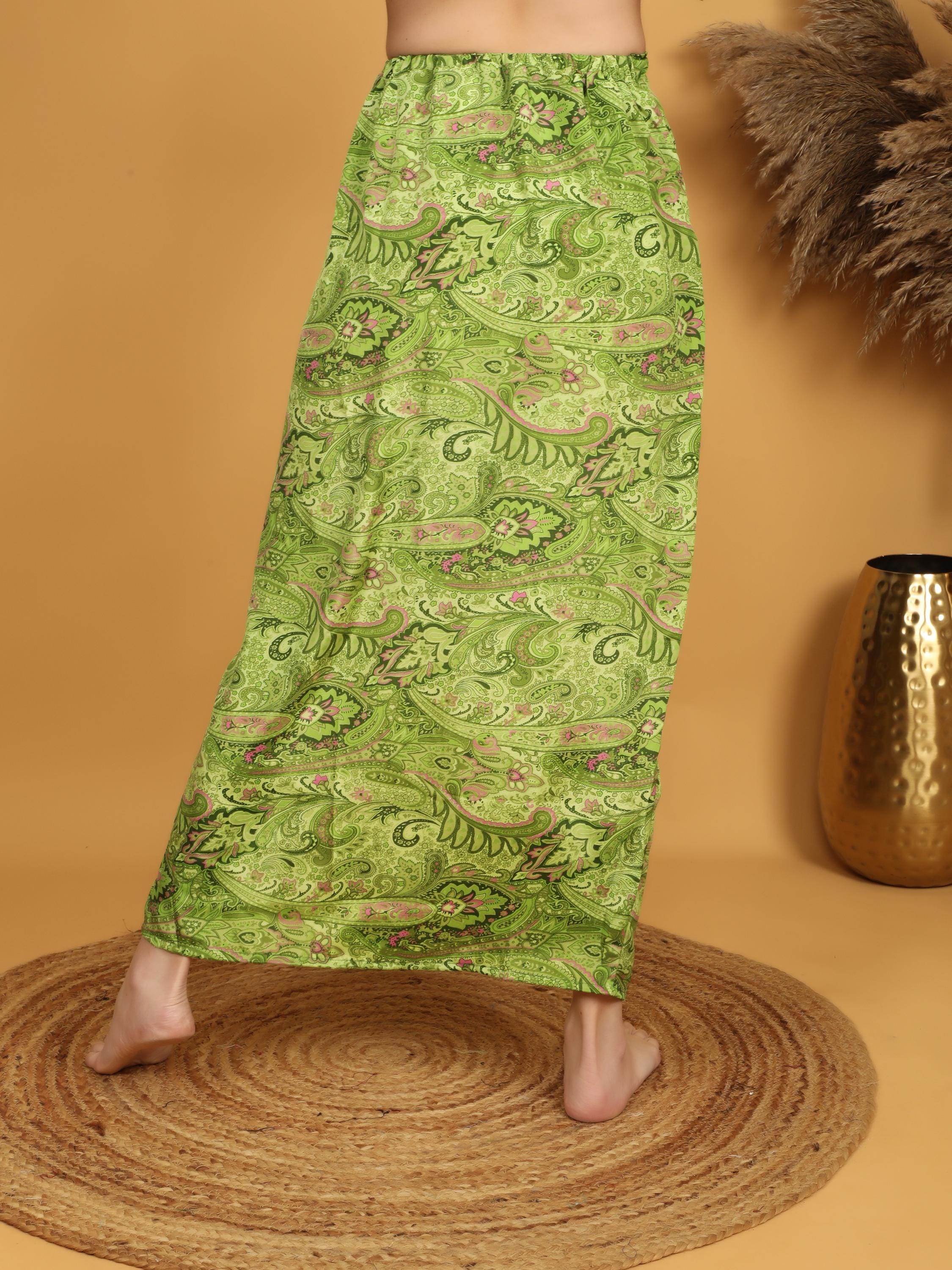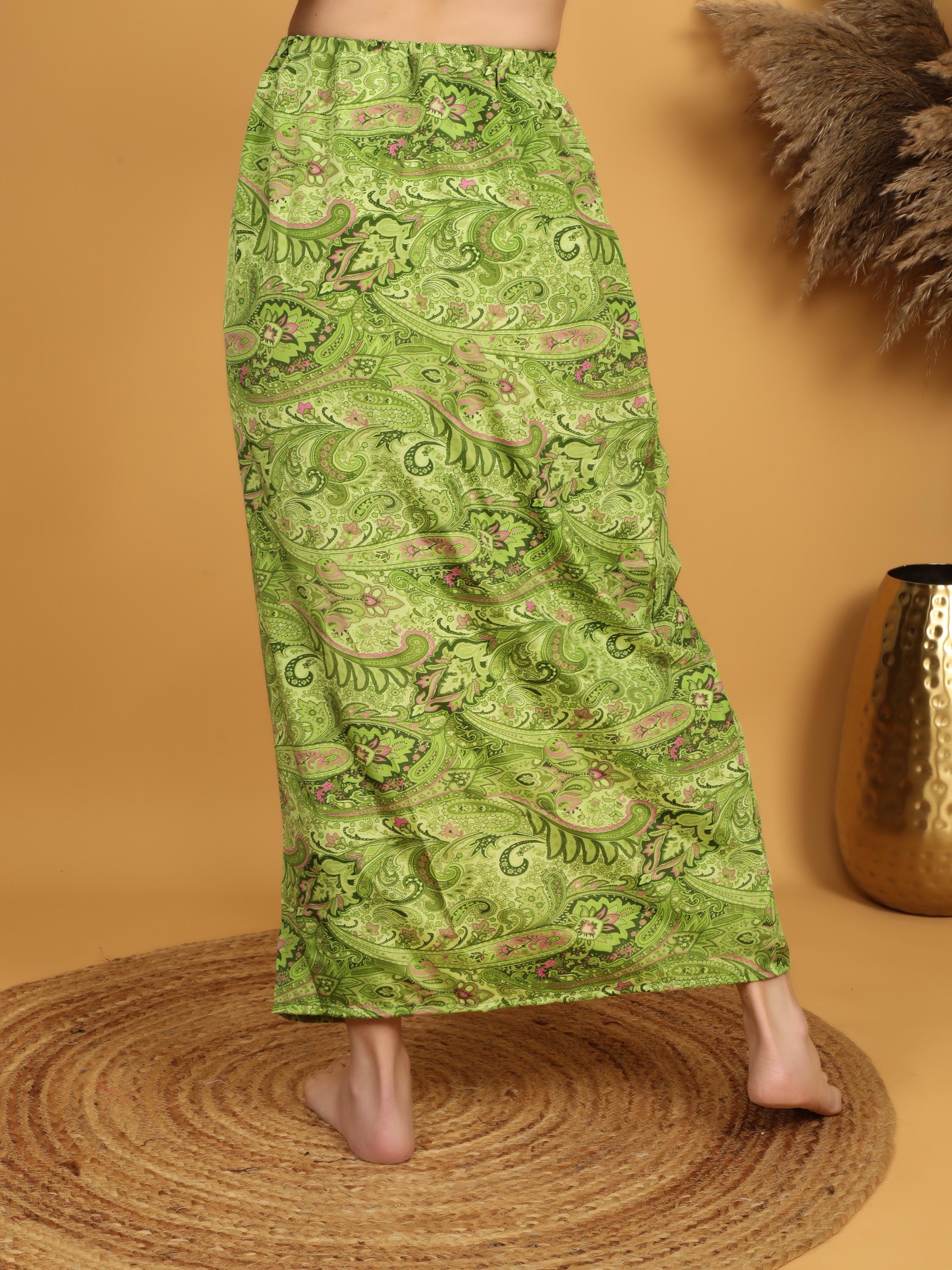 Add vibrant charm to your wardrobe with this green paisley maxi skirt designed for effortless movement and everyday comfort. With its flowing silhouette and rich ornamental print, this piece captures true bohemian spirit.
