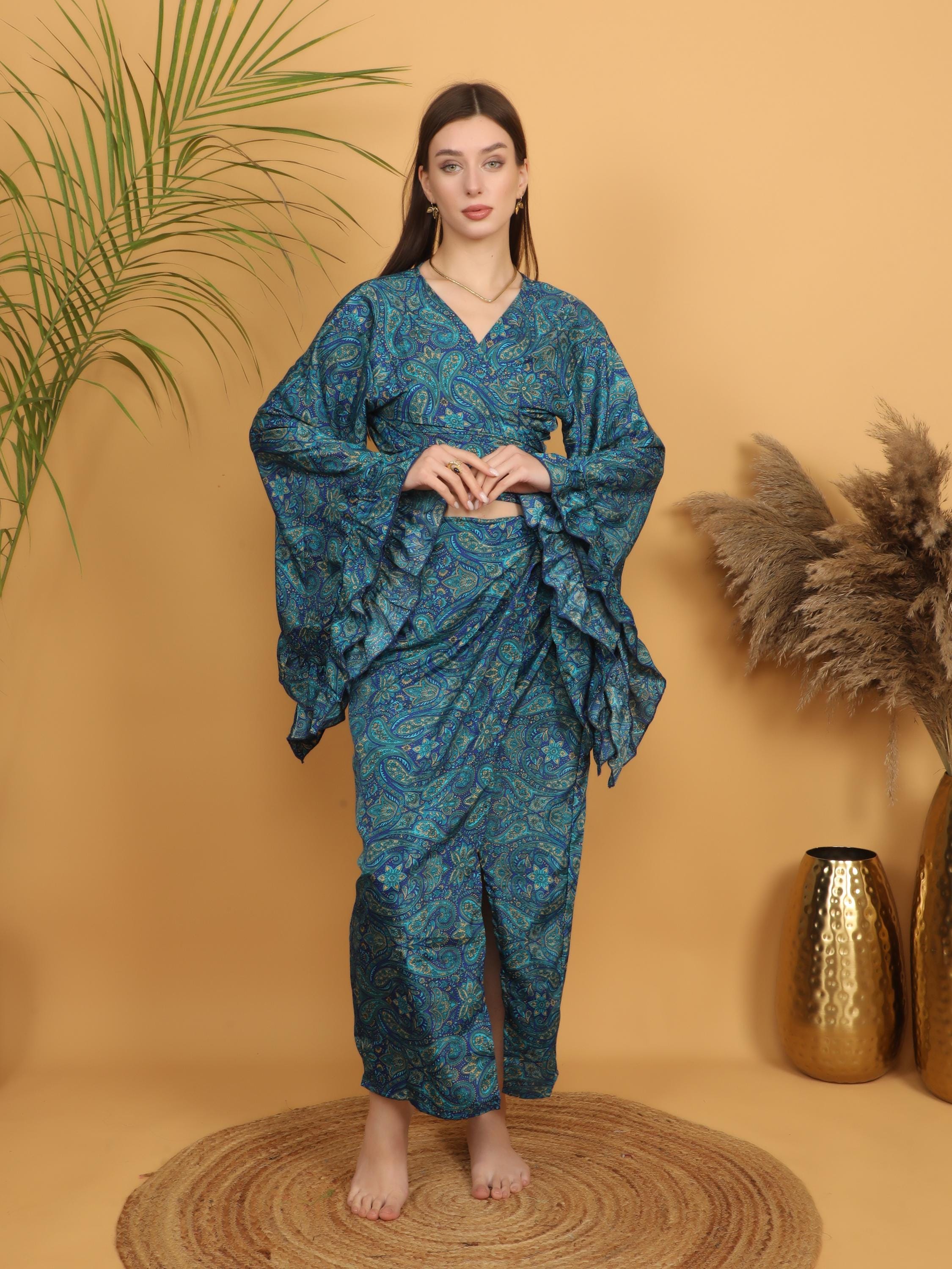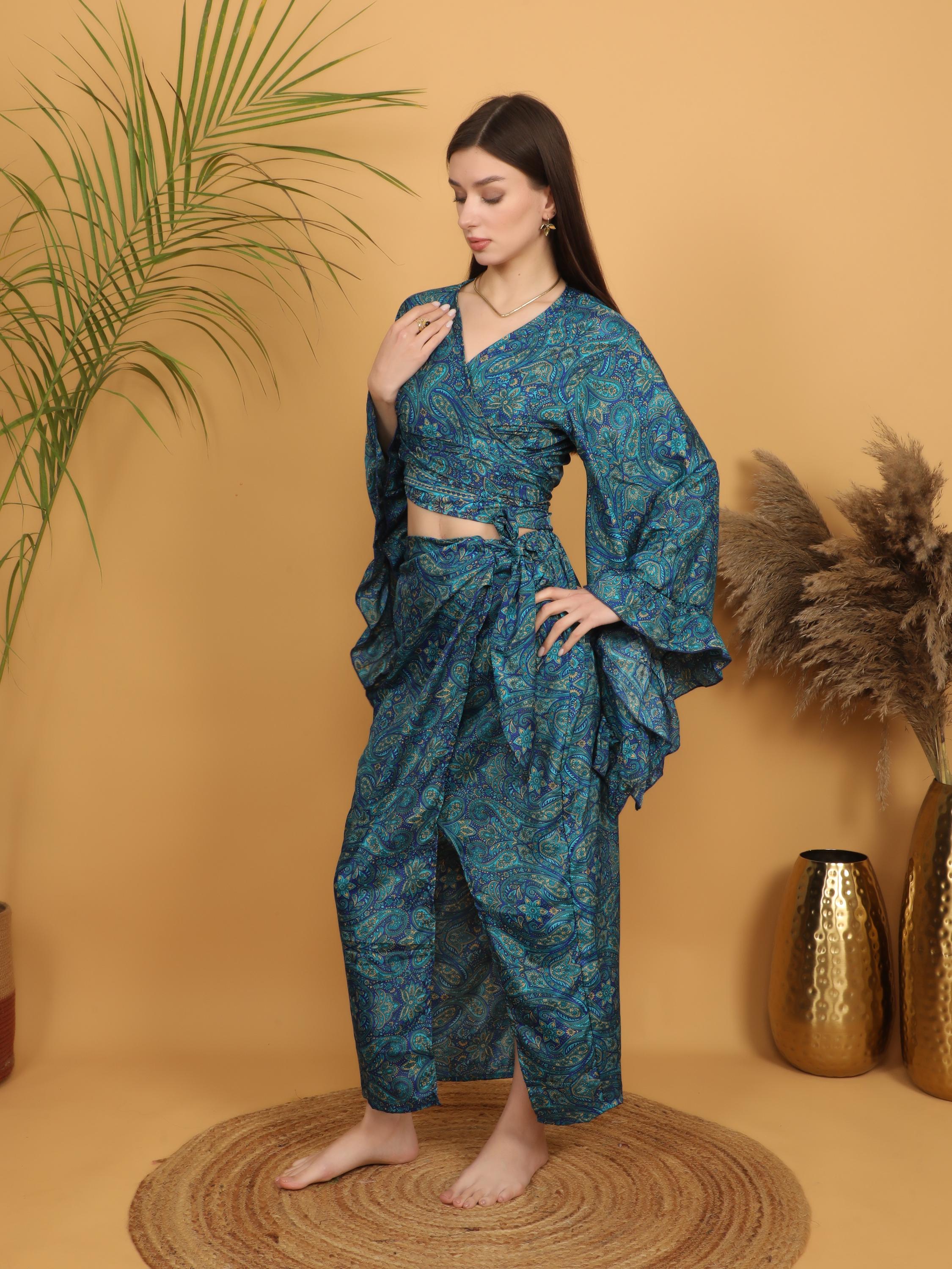 Made from lightweight polyester, the fabric drapes smoothly and moves beautifully as you walk. It feels soft, breathable, and keeps its vibrant colors intact. Perfect for warm days, evening gatherings, festivals, or styled casually with a simple top.